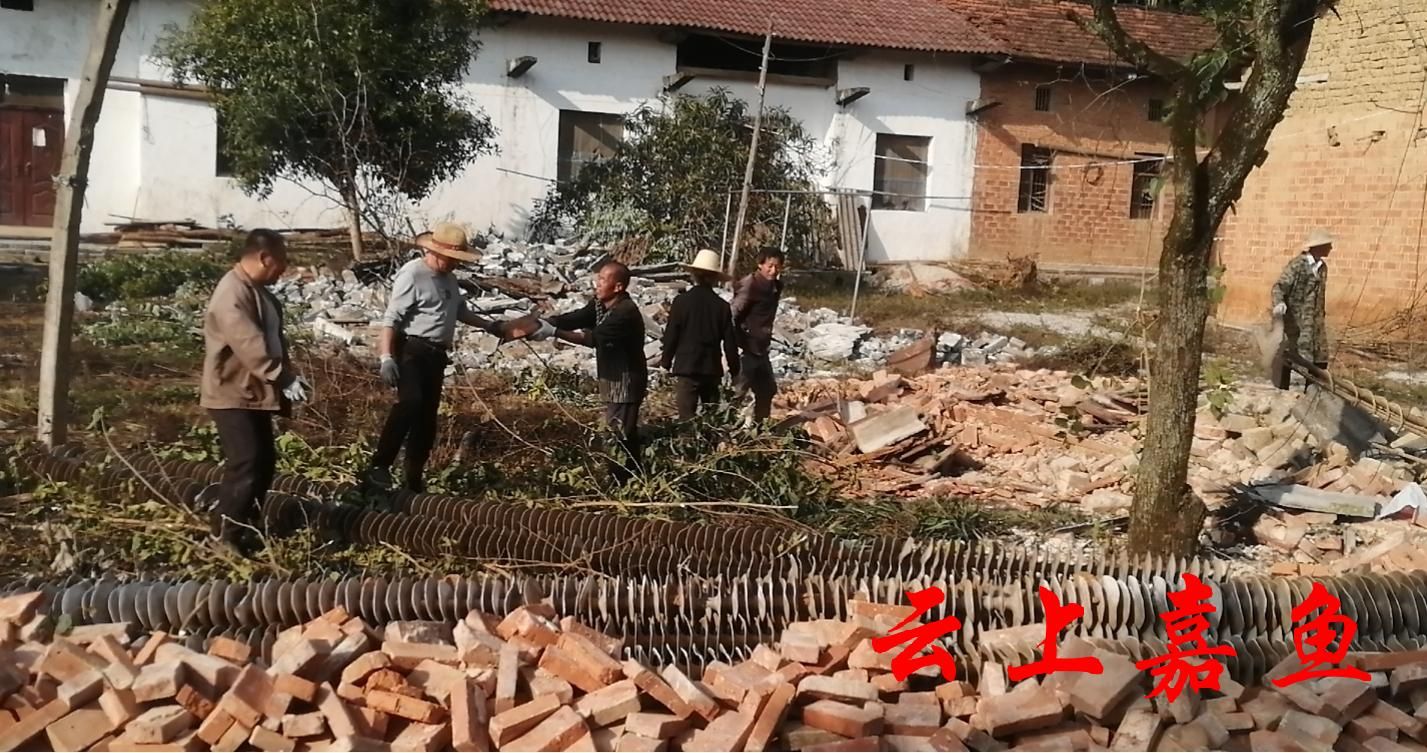 “这个废弃屋子要拆了,大家离远一点”党员刘峰边开着挖掘机边提醒大家注意安全。“清场的人员注意把废旧材料放远一点,堆放整齐。”11月15日,村干部刘志峰边搬运杂木边维护现场秩序。
