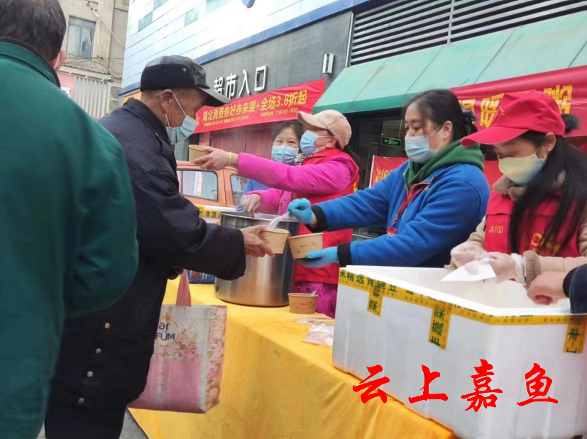 云上嘉鱼报道(全媒体记者邓丹)“阿姨您还没吃早餐吧,热腾腾的腊八粥来一碗吧,这里还有现做的包子!”12月30日,县中百仓储超市门口,义工和志愿者们正热情地招呼着市民喝腊八粥、过腊八节。