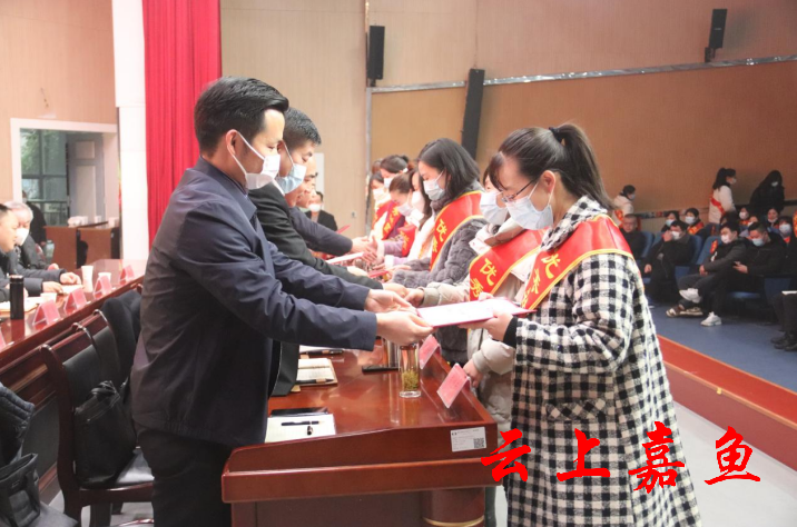 会议通报表彰了鱼岳镇2022年纳税过百万企业并颁发奖牌;通报表扬了鱼岳镇2022年度优秀社区工作者并颁发荣誉证书;相关社区作了交流发言。