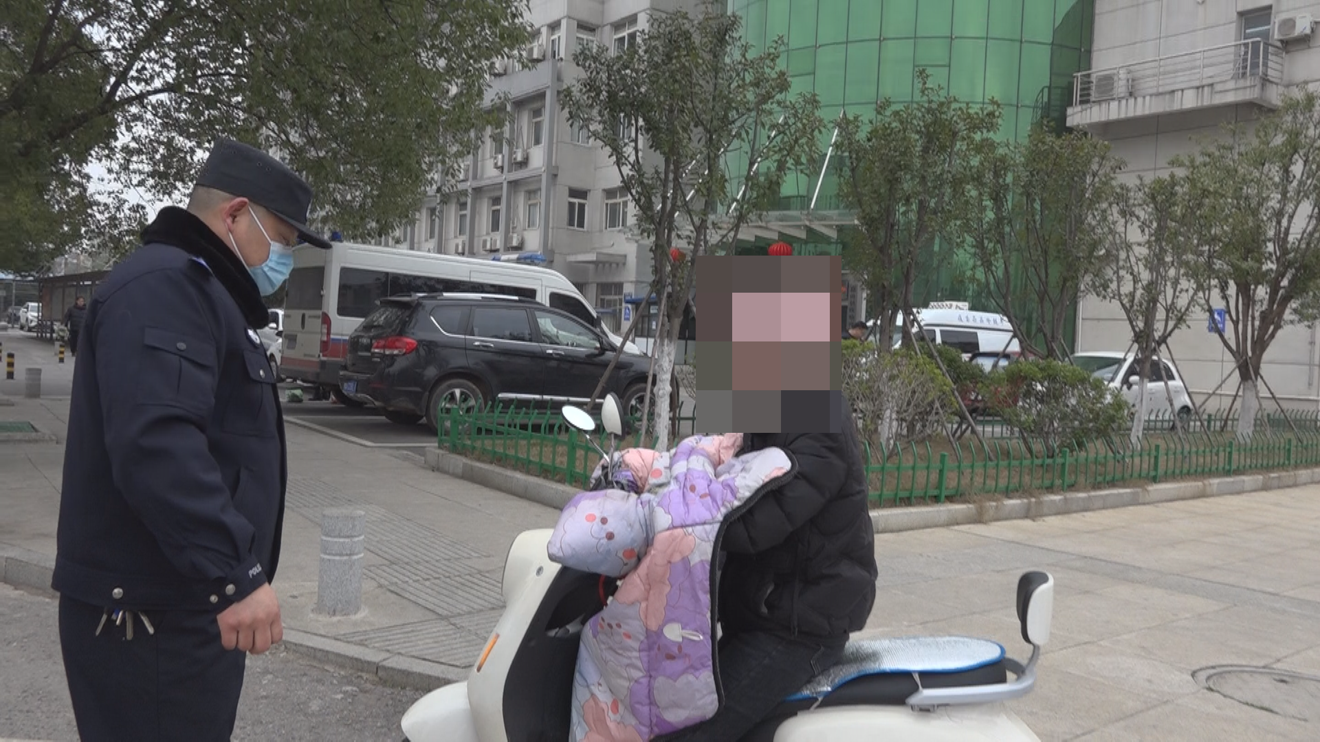 在疾控中心交通路口,行人骑电动车不走斑马线。