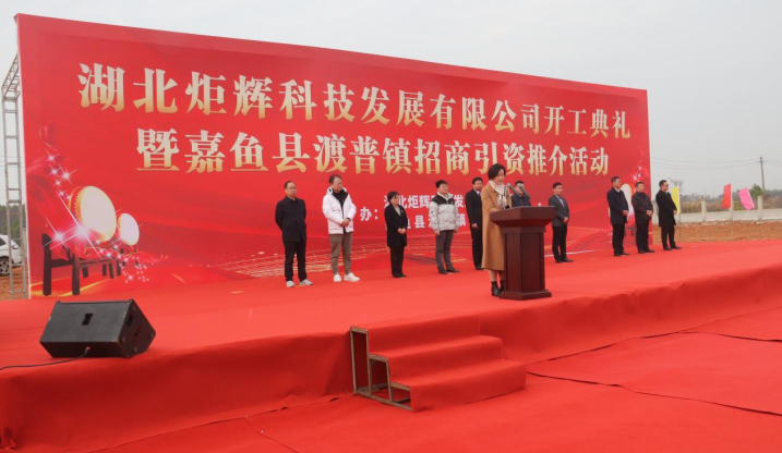 云上嘉鱼报道(全媒体记者雷佳敏 通讯员朱肖邦)2月21日上午,湖北炬辉科技发展有限公司开工典礼暨嘉鱼县渡普镇招商引资推介活动圆满举行。县人大常委会副主任邓卫东出席活动并宣布项目正式开工、副县长谢亚芳出席活动并致辞,来自全国各地的40名客商代表以及全体镇、村干部,镇企业代表参加活动。