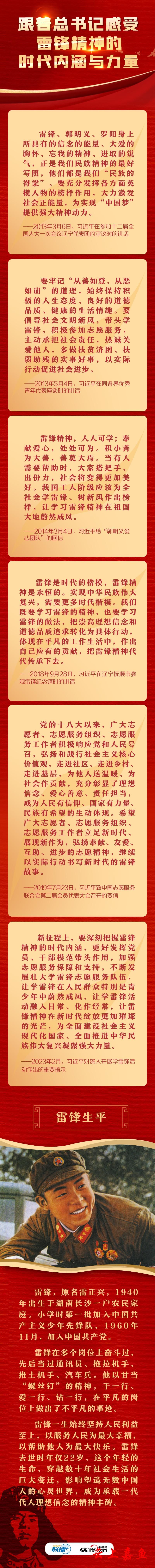 近日,习近平总书记对深入开展学雷锋活动作出重要指示指出,今年是毛泽东等老一辈革命家为雷锋同志题词60周年。60年来,学雷锋活动在全国持续深入开展,雷锋的名字家喻户晓,雷锋的事迹深入人心,雷锋精神滋养着一代代中华儿女的心灵。实践证明,无论时代如何变迁,雷锋精神永不过时。 党的十八大以来,习近平总书记就学习弘扬雷锋精神多次作出重要指示,号召把雷锋精神代代传承下去。央视网《联播+》带您从总书记的重要讲话和信件中,感受雷锋精神的时代内涵与力量。 (中央广播电视总台央视网)