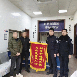 云上嘉鱼报道(通讯员周雅洁)2023年2月24日上午,嘉鱼县某典当行店员陈某将印有“破案神速解民忧,失而复得暖人心”的锦旗送到县公安局鱼岳派出所民警手中,对民警认真负责、热切回应群众期待,为其追回全部被骗资金16150元深表感谢之情。