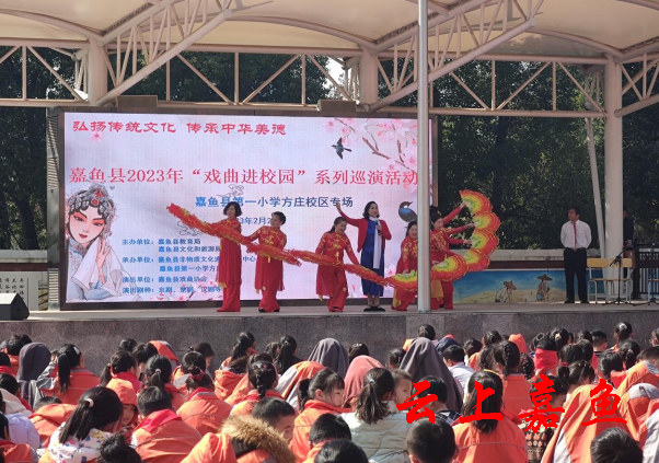 云上嘉鱼报道(全媒体记者雷佳敏 通讯员黄依莎)为传承与弘扬中华优秀传统文化,提高学生艺术修养,丰富校园艺术氛围,2月27日上午,由县教育局、县文化和旅游局主办的“戏曲进校园”系列巡演活动在嘉鱼县第一小学方庄校区开展。