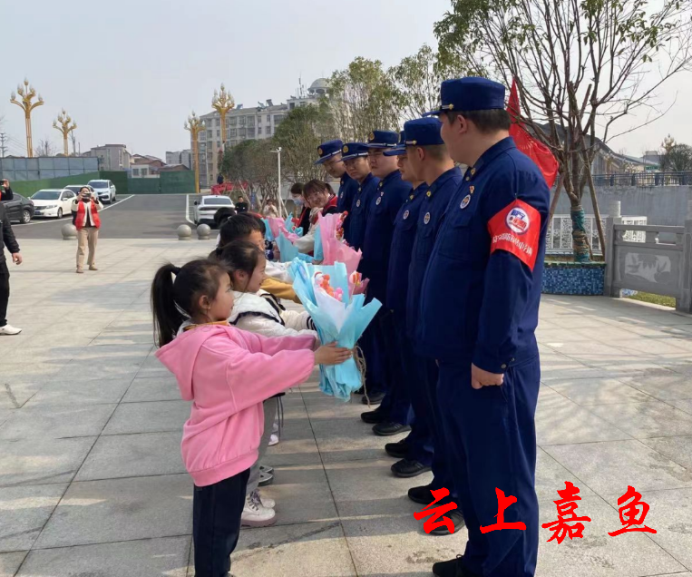 活动结束后,学生们还为自己心目中的消防英雄送上花束。