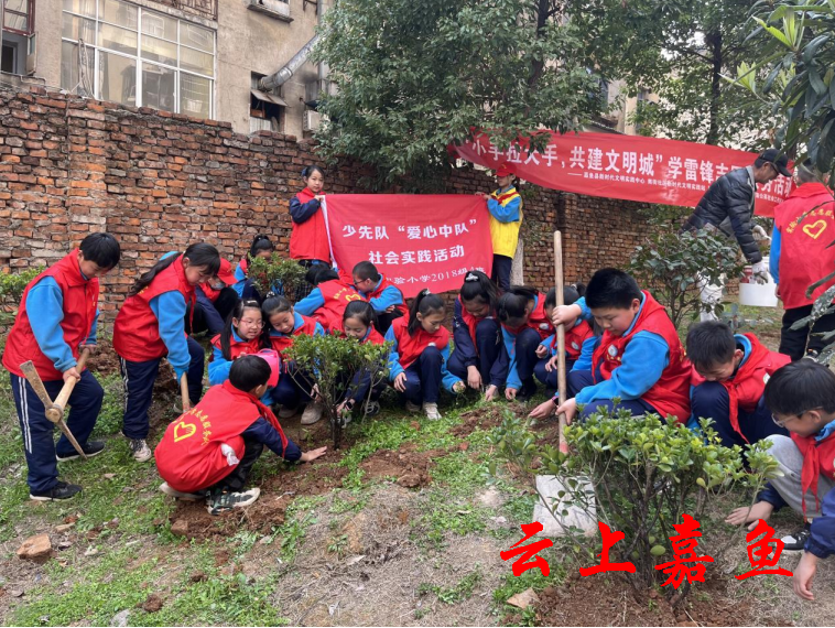 【文明嘉鱼】县实验小学开展学雷锋植树实践活动