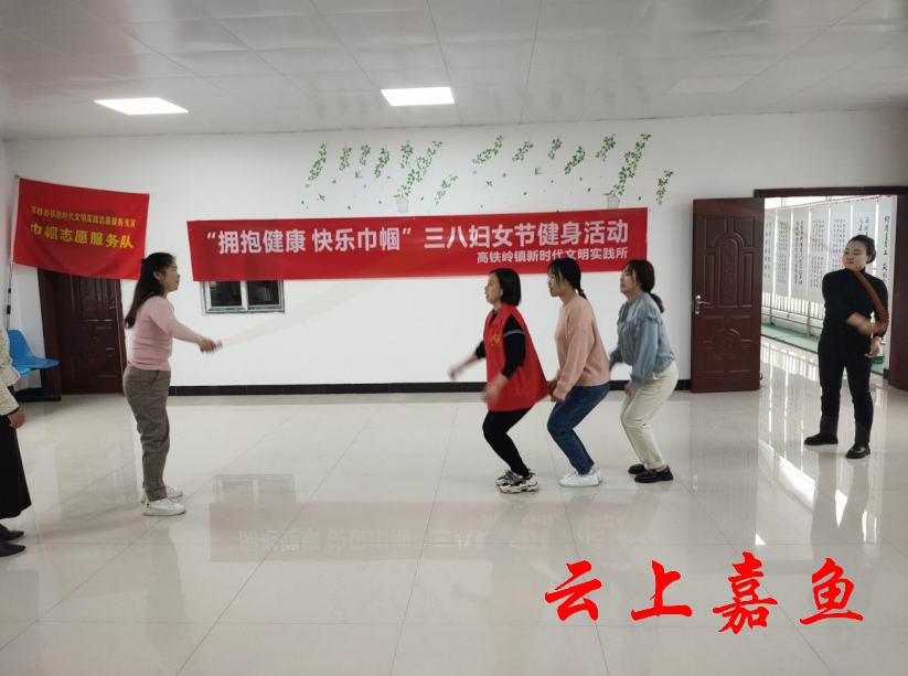 云上嘉鱼报道(通讯员卜美娟)暖春三月,春意浓浓,为庆祝“三八”国际妇女节的到来,更好地展现高铁岭镇女职工健康向上,充满活力的精神面貌,丰富妇女同胞的文化生活,3月8日,高铁岭镇妇联联合镇新时代文明实践所、镇新时代文明实践志愿服务支队巾帼志愿服务队,组织开展了“拥抱健康、快乐巾帼”“三八”国际妇女节健身活动。