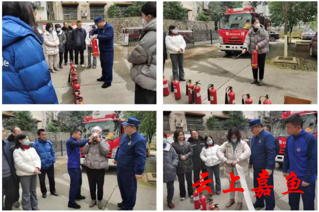 随后,消防队员向大家讲解了消防安全知识,涉及火灾发生的原因、预防火灾的方法、火场逃生的基本知识、灭火器的正确使用方式等内容。为进一步巩固学习效果,还现场演示了灭火器使用的操作程序,使大家都能正确掌握灭火器的操作方法。