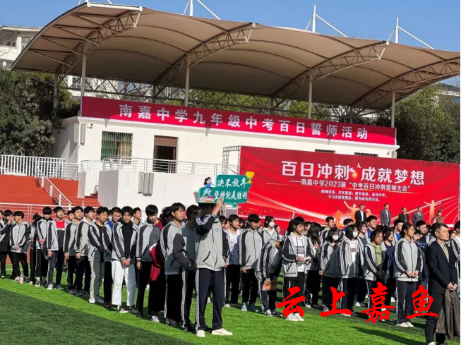 云上嘉鱼报道(全媒体记者熊琦)最是一年春好处,扬帆奋进正当时。3月13日,县南嘉中学举行“百日冲刺 成就梦想”中考百日誓师大会。该校初三全体师生、部分家长参加活动。