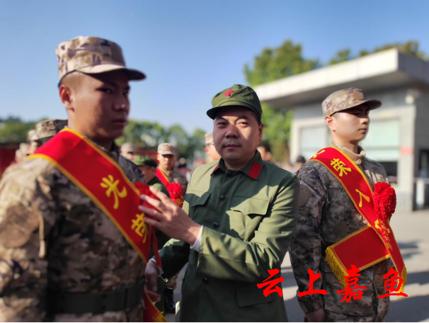 仪式上,荣立一等功的参战退役老兵汪忠初、荣立二等功的参战退役老兵李廷明及魏双清、孙剑等参战退役老兵为即将离开家乡启程入伍的新兵们戴上了鲜艳的大红花,并向他们送上了真诚的祝福。