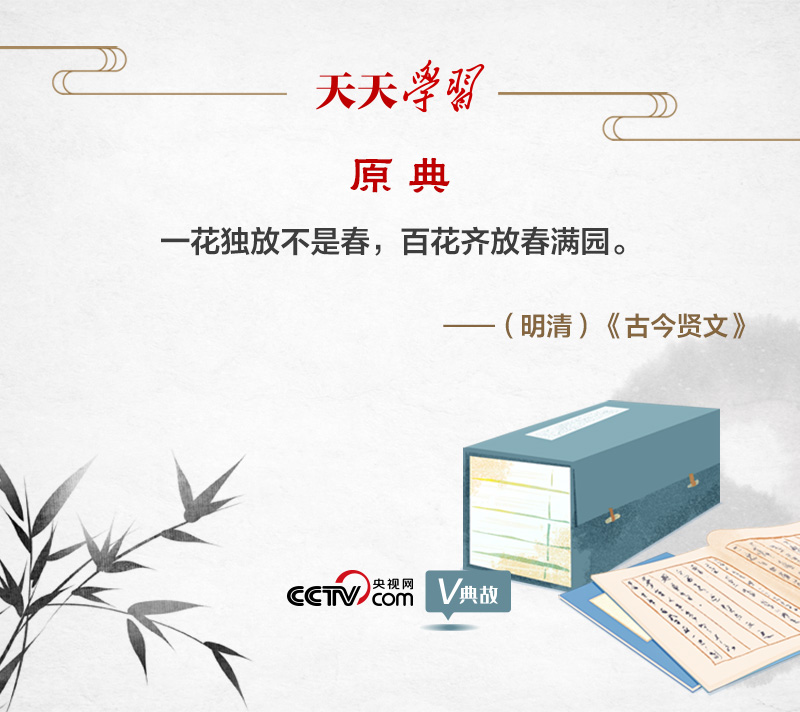 “一花独放不是春,百花齐放春满园”,意思是,一枝单独开放的花朵不能代表春天的到来,只有百花竞艳才是人间春色。这句民谚之所以广为流传,是因为饱含深刻哲理:一、阐述了整体和部分的辩证关系,“一花”是部分,“百花”是整体,部分的功能是较小的,要以整体发展带动部分发展;二、体现了联系的观点,联系具有普遍性,“一花”和“百花”是相互联系的,因此要尊重文化的多样性;三、说明了事物是客观的和发展变化的,“百花齐放”是必然的,因此要顺应历史潮流。