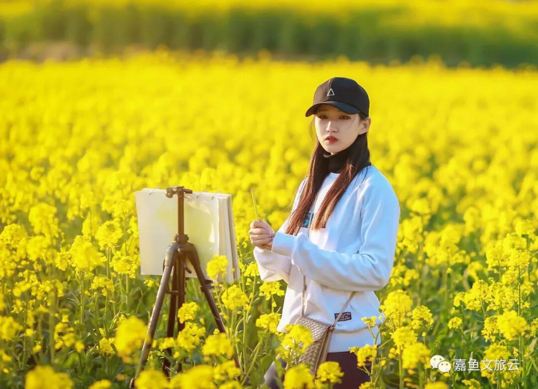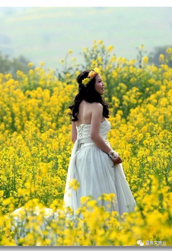 拍摄小技巧:站在油菜花田中拍照,可以让自己侧身站立,面朝阳光,闭上眼睛,细细感受阳光打在脸上的美好,感受花的清香,这样的照片拍出来,你就是最美的那一个。
