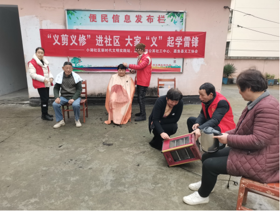 云上嘉鱼报道(全媒体记者邓丹 通讯员王雯倩)3月23日,鱼岳镇小湖社区联合县义工协会、县蒲公英社会工作服务中心开展“义剪义修”进小区,大家“义”起学雷锋志愿服务活动。