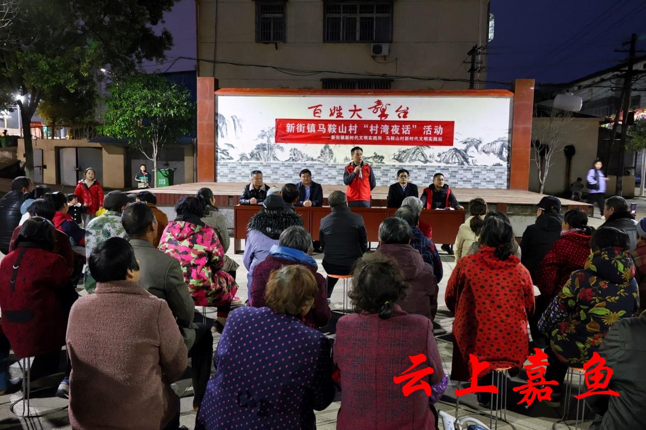 云上嘉鱼报道(通讯员梁宁)3月24日晚,新街镇马鞍山村的百姓大舞台广场上灯火通明,镇村干部、村民、党员代表和志愿者们坐在一起,话家常,唠农嗑,宣讲党的政策。