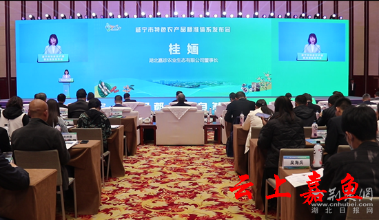 4月7日,咸宁市特色农产品标准体系发布会在武汉举行。会上,湖北嘉鱼嘉珍生态农业发展有限公司总经理桂婳向大家介绍了嘉鱼莲藕产业标准化体系发展情况。