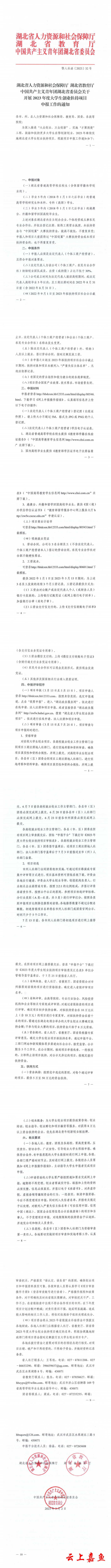 湖北省人力资源和社会保障厅 湖北省教育厅中国共产主义青年团湖北省委员会关于开展2023年度大学生创业扶持项目申报工作的通知