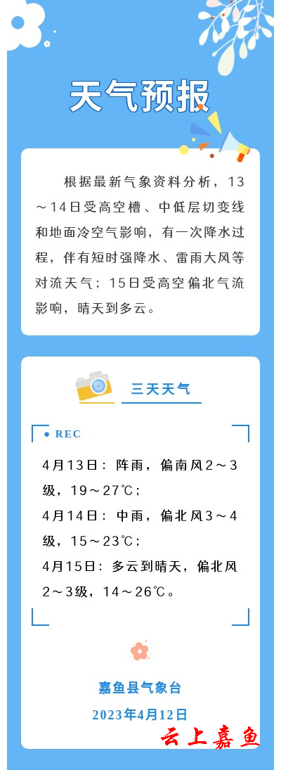 2023年4月12日嘉鱼天气预报