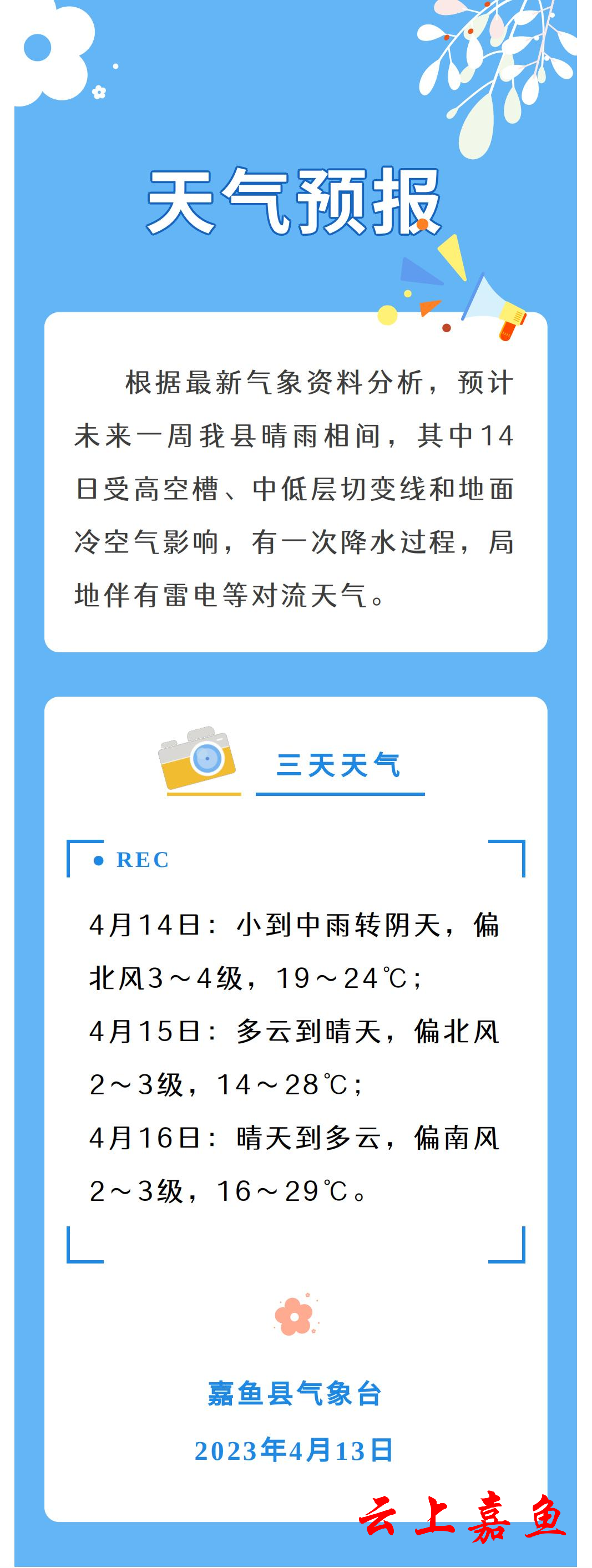 2023年4月13日嘉鱼天气预报