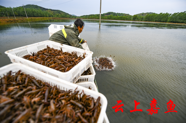 云上嘉鱼报道(全媒体记者雷平 通讯员卜美娟)4月18日早上6点,在高铁岭镇陆水村1000亩稻虾共养项目基地,监利县跃进湖水产养殖专业合作社技术人员正在投放龙虾苗,在夜间至天亮低温时间投放虾苗,有利于提高虾苗成活率。
