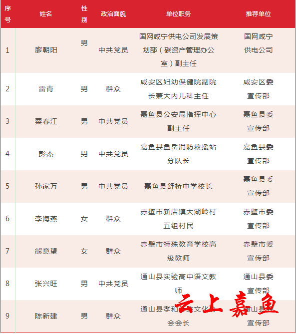 根据“南鄂楷模”评选活动要求,坚持“先进性、示范性、代表性”原则,经提名推荐、综合评审等程序,市委宣传部拟命名廖朝阳等9名个人为2023年一季度“南鄂楷模”。为充分体现公开、公平、公正的原则,现将拟命名名单予以公示。