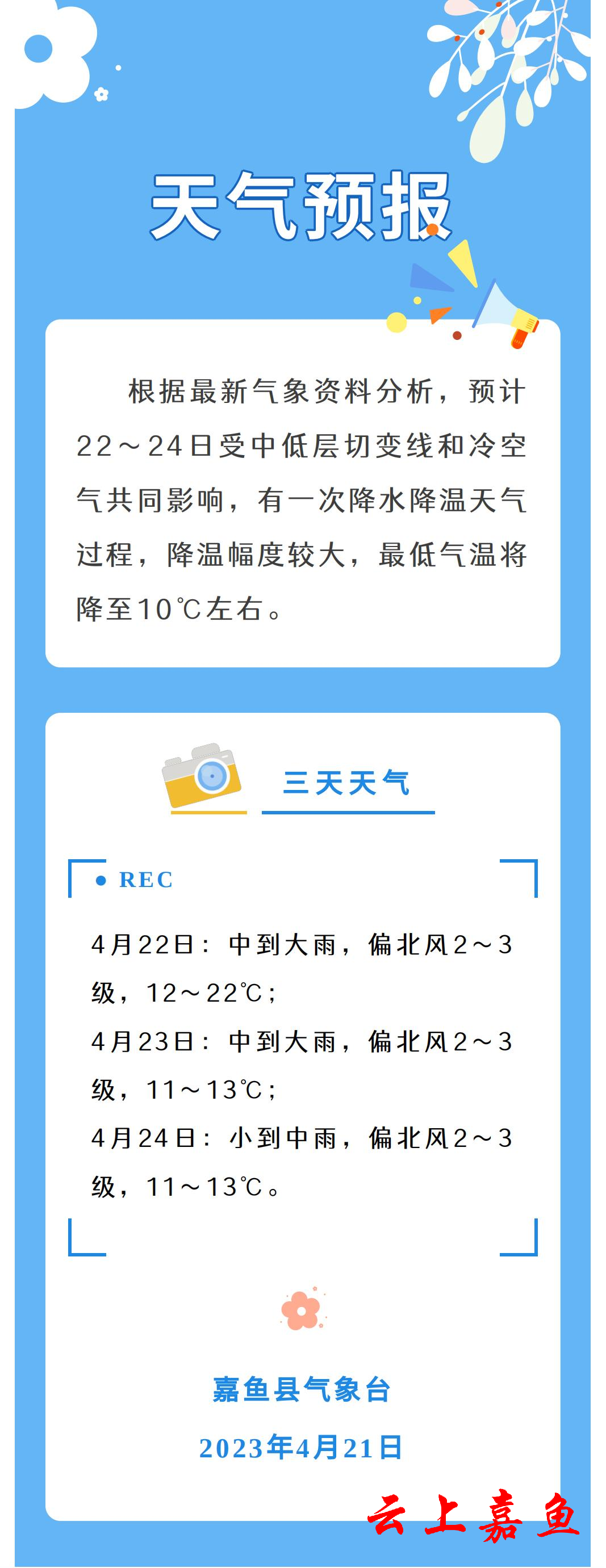 2023年4月21日嘉鱼天气预报