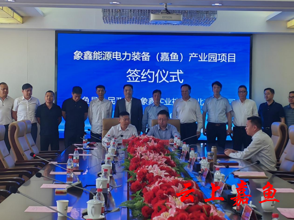 云上嘉鱼报道(全媒体记者陈铮 通讯员陈运涛)4月20日,象鑫能源电力装备(嘉鱼)产业园项目签约仪式在官桥八组隆重举行。县委书记王永、中复能源装备产业集团总裁任泽出席仪式并致辞,县委副书记、县长胡金云主持仪式,县领导易靖、范威、田野集团股份有限公司名誉董事长周宝生及县直有关部门主要负责人参加仪式。