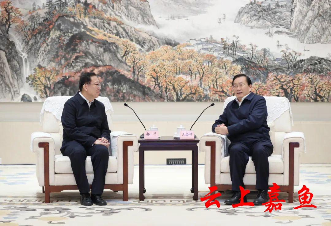 4月22日下午,省委副书记、省长王忠林与来汉参加“2023年首届中国智能社会治理论坛”的北京大学党委书记郝平座谈交流。