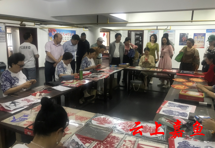 在嘉鱼县非物质文化遗产保护中心,调研组现场观摩了精彩的剪纸艺术。非遗传承人手拿小剪刀,将一幅幅颜色鲜艳的纸片折叠后,灵巧地剪成许多精美的图案,展开纸片后,花草树木、鸟兽鱼虫,一个个鲜活美好的形象展现在大家面前,在欣赏的同时,不由得让人感叹剪纸艺术的精妙和中华传统文化的魅力。