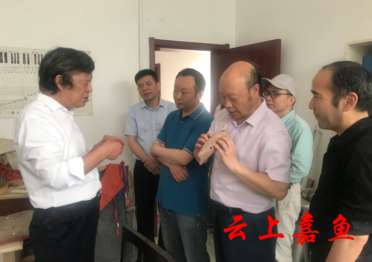 在嘉鱼县非遗馆,调研组欣赏了呜嘟表演曲目《野洲情趣》,了解了嘉鱼县本土曲艺曲目《簰洲说唱》、《彩莲船》、《蚌壳精》、《舞龙舞狮》以及嘉鱼鱼文化和嘉鱼方言。调研组还来到嘉鱼县呜嘟非遗传承基地,拜访了呜嘟非遗传承人毕寅生老师。