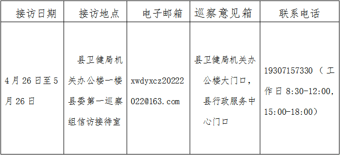 巡察组在县卫生健康局巡察期间,具体联络方式如下: