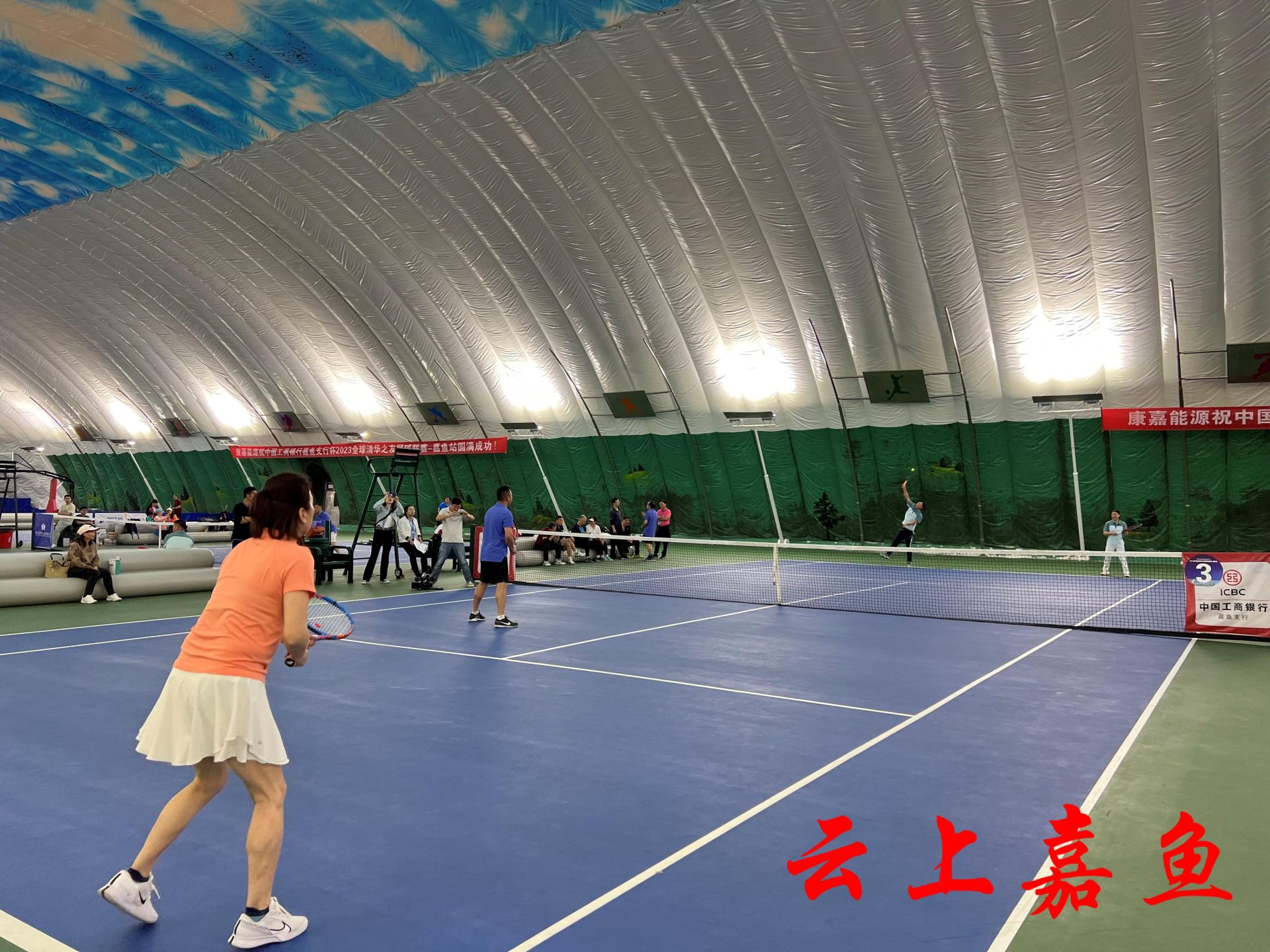 云上嘉鱼报道(全媒体记者皮道琦)5月2日,“中国工商银行嘉鱼支行杯”2023年全球清华之友网球联赛(嘉鱼站)在蜜泉湖大健康产业园开赛,由全球各地的清华校友、各高校网球俱乐部、高新技术企业协会网球队组成的16支代表队,经过一天的角逐,决出一二三等奖。
