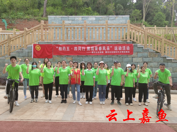 云上嘉鱼报道(全媒体记者邓丹 通讯员王田)为庆祝五四青年节,增强青年人的集体凝聚力和归属感,活跃工作气氛,5月4日,鱼岳镇樱花社区新时代文明实践站、樱花社区团委联合团县委组织社区青年干部、党员、团员,在牛头山森林公园开展“相约五·四同行 展示青春风采”主题活动。