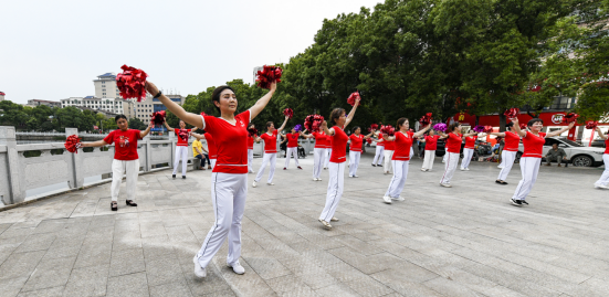 云上嘉鱼报道(全媒体记者雷平)5月20日,鱼岳镇东街社区小雅广场舞健身队全体队员身穿统一队服,表演了《打莲湘》、《花球舞》等舞蹈,庆祝健身队成立六周年。 “六年的持之以恒,科学健康锻炼,使团队精神面貌有了很大的提高,我们以舞会友,和谐凝聚,逐步将其发展为一项社区群众喜闻乐见的文体项目,成为广场每晚一道靓丽的风景。”队长胡望群说道。 编辑:李浩 编审:陈伟