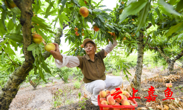 云上嘉鱼报道(全媒体记者雷平 通讯员梁宁)6月11日,嘉鱼县新街镇嘉多宝生态果蔬专业合作社里,黄里透红早熟黄桃压弯了枝头,游客络绎不绝。 据合作社负责人张梅芬介绍,黄桃成熟后,单果重半斤以上。 6月8日开园以来,每天都吸引了来自武汉、咸宁、赤壁、湖南临湘等地的自采游客进园采摘,黄桃日销量达2000多斤。 该合作社已被湖北省农科院果茶所定为实验基地,现有观光采摘面积200亩,共有桃、橘、梨、李、枣、枇杷、桑葚、草莓等40个时鲜水果品种,可一年四季供游客采摘。 编辑:范千竹 编审:陈伟