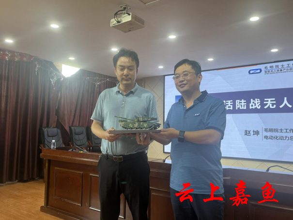 活动中,北京交通大学电气工程专业博士、高级工程师赵坤团队从初识陆战无人平台、国内外陆战无人平台情况、无人平台系统组成、无人平台动力系统以及未来发展趋势五个方面为同学们讲解了相关科普知识,并向学校赠送了99A坦克模型纪念品。
