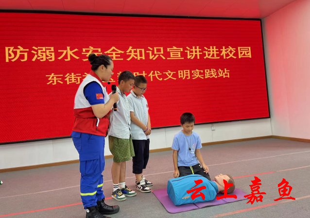 云上嘉鱼报道(全媒体记者雷佳敏)为切实做好夏季学生防溺水安全教育工作,避免溺水事故的发生,6月16日,鱼岳镇东街社区新时代文明实践站联合嘉鱼县蓝天救援队走进县实验小学东街校区,组织开展“防溺水安全知识宣讲进校园”活动。