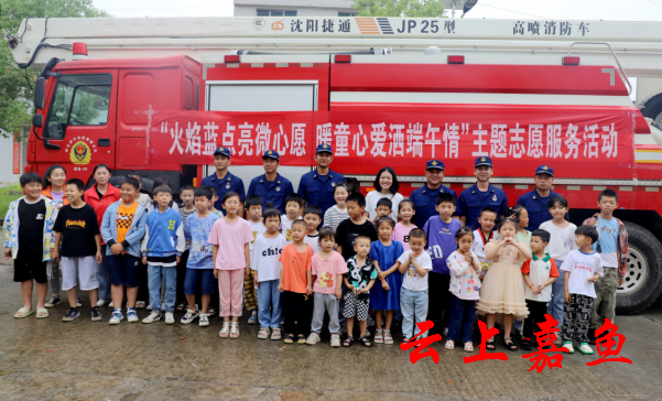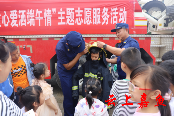 云上嘉鱼报道(通讯员李静 阮子祥)6月17日上午,共青团嘉鱼县委联合县消防救援大队走进簰洲湾镇金家洲村“童心港湾”项目点,开展“火焰蓝点亮微心愿 暖童心爱洒端午情”主题志愿服务活动。