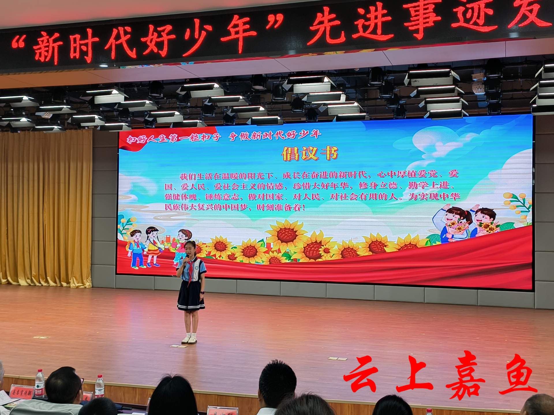 “我们生活在温暖的阳光下、成长在奋进的新时代,心中厚植爱党、爱国、爱人民、爱社会主义的情感,珍惜大好年华,修身立德……”仪式在“新时代好少年”的集体倡议中画上圆满句号。