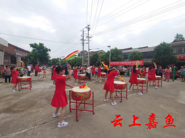 米埠村健身志愿服务队10名队员身着盛装,彩带挥舞,组成打鼓队现场助兴。伴随着一首吉祥喜庆的《好日子》把现场气氛推向高潮,给辖区群众带来了一场文化盛宴,充分展示了大家健康乐观、积极向上的精神风貌。