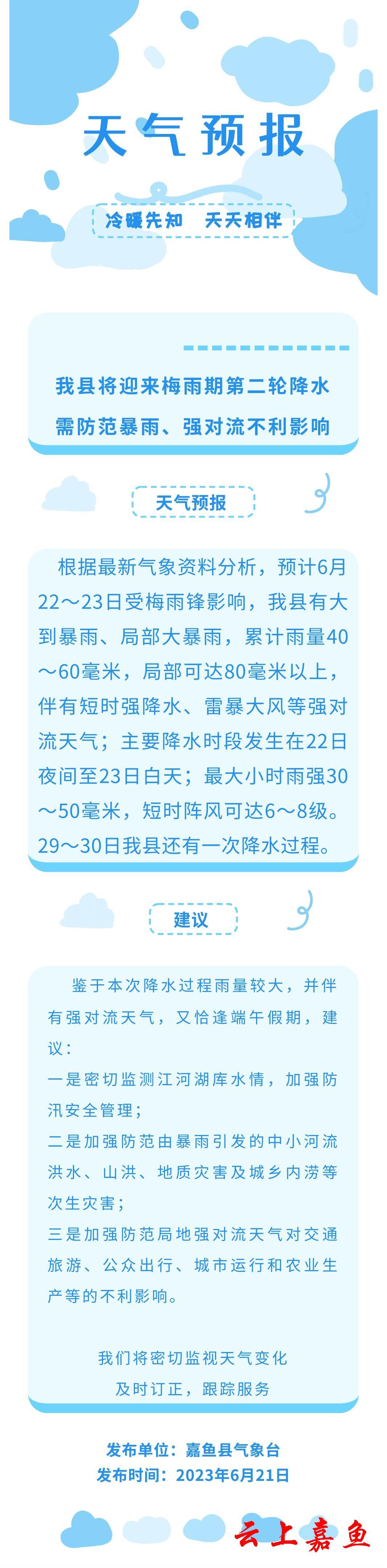 我县将迎来梅雨期第二轮降水 需防范暴雨、强对流不利影响