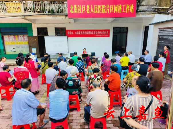 云上嘉鱼报道(全媒体记者祁声坤)6月21日,北街社区新时代文明实践站联合县红十字会在老人民医院网格工作站开展“防溺水 心肺复苏应急救援”知识宣讲活动。