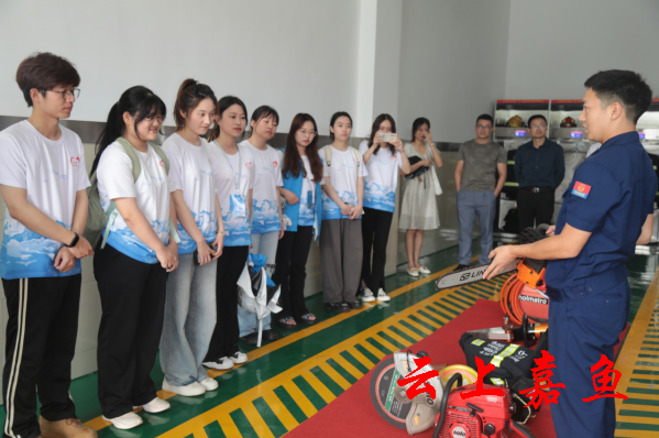 云上嘉鱼报道(全媒体记者雷佳敏 通讯员李静)为丰富大学生暑期社会实践活动,进一步提高青年的消防安全意识和自防自救能力,6月25日下午,共青团嘉鱼县委组织武汉纺织大学会计学院大学生暑期社会实践团走进县消防救援大队,与消防指战员零距离接触,体验“蓝朋友”的生活。