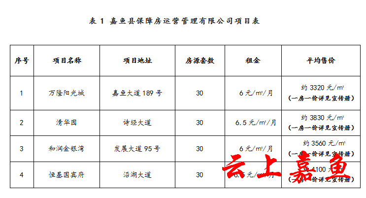 嘉鱼县保障房运营管理有限公司