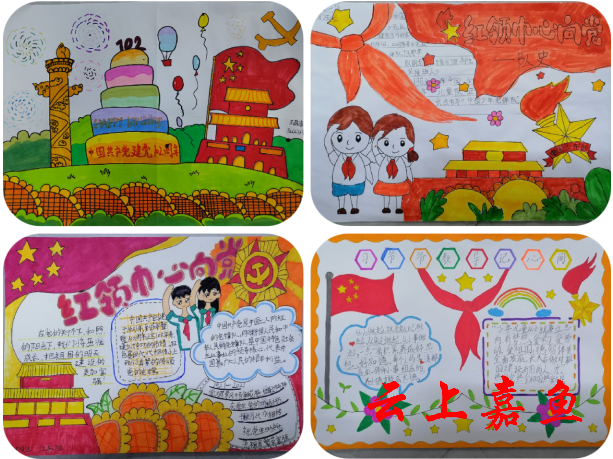 为庆祝中国共产党成立102周年,向党的生日献礼,该校还组织了“党的历史我来绘”手抄报、绘画比赛。孩子们用色彩点燃对党的热爱,用画笔勾勒出心中的梦想,以画传情,以笔言志,将对党的感恩之情、对祖国的美好祝福化作一张张画卷,为党的生日献上最真挚的礼物和祝福。