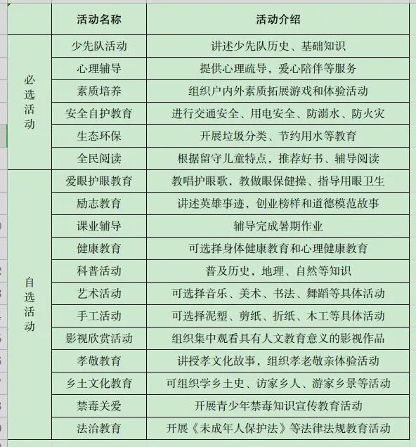 “希望家园”暑期关爱留守儿童活动内容主要是为留守儿童提供课业辅导、安全教育、科普教育、素质拓展、爱心陪伴、法治宣讲、生态环保等志愿服务。(具体服务内容可参考:2023年“希望家园”活动建议)