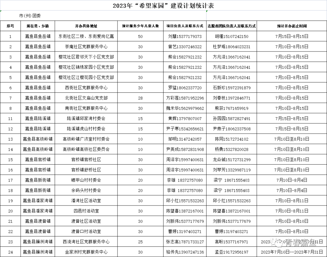 为了让孩子们度过一个愉快而有意义的暑假,共青团嘉鱼县委将在多个乡镇广泛开展2023年暑期少年儿童“希望家园”活动,号召青年志愿者与家长们共同关爱进城务工子女及留守儿童。