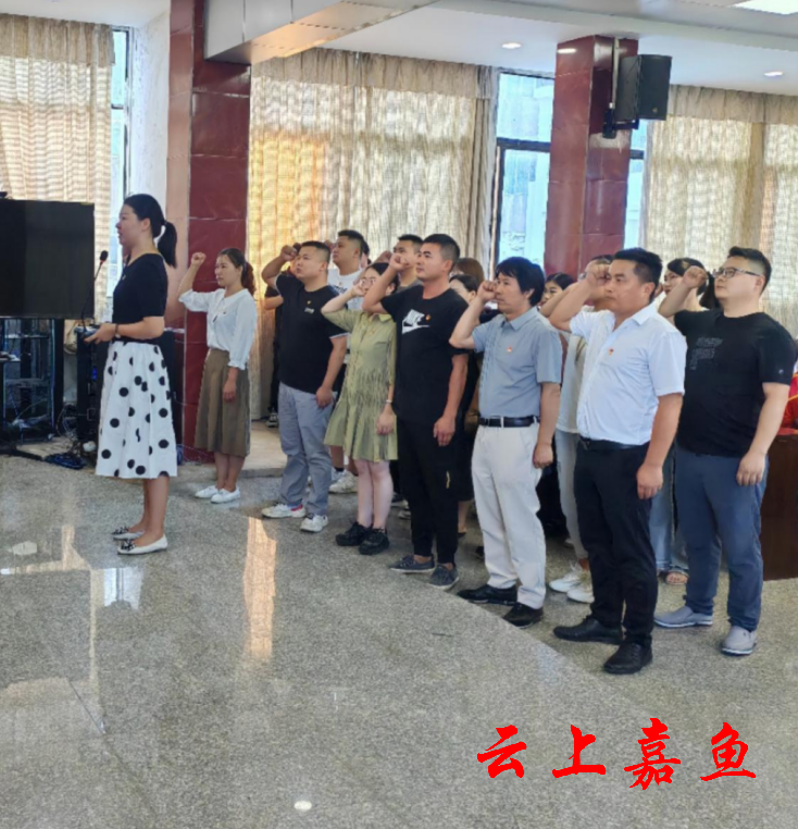 活动在庄严的国歌声中拉开序幕,面对鲜红的党旗,全体党员神情肃穆、举起右拳、庄严宣誓。