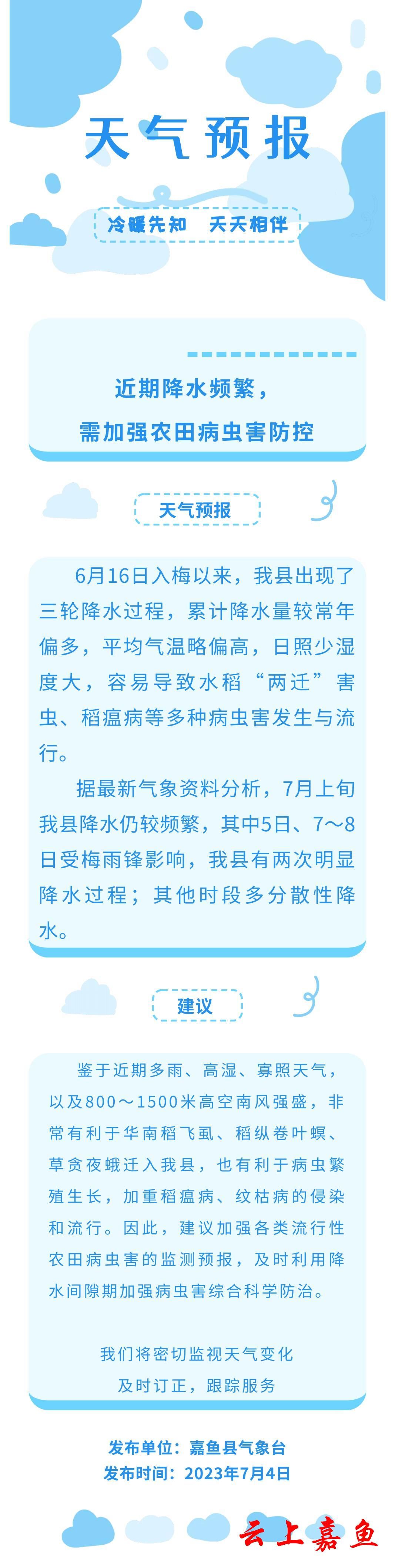 近期降水频繁,需加强农田病虫害防控