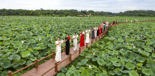 云上嘉鱼报道(全媒体记者雷平 通讯员金维莉)7月5日,位于嘉鱼县新街镇的清廉文化公园广袤湖面上,红荷悄然绽放,接天莲叶,蔚为壮观。 嘉鱼县旗袍文化艺术协会的佳丽们身着旗袍,婷婷袅袅地漫步在红荷中。艳丽的旗袍,盛开的荷花,田田荷叶,相互映衬,将湖面装点一新,别有一番景致。 编辑:范千竹 编审:陈伟