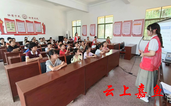云上嘉鱼报道(全媒体记者祁声坤)7月7日下午,鱼岳镇北街社区党总支、北街社区团支部、北街社区新时代文明实践站联合大学生志愿者在北街社区多功能活动室开展“快乐过暑假 安全不‘放假’”安全教育活动。